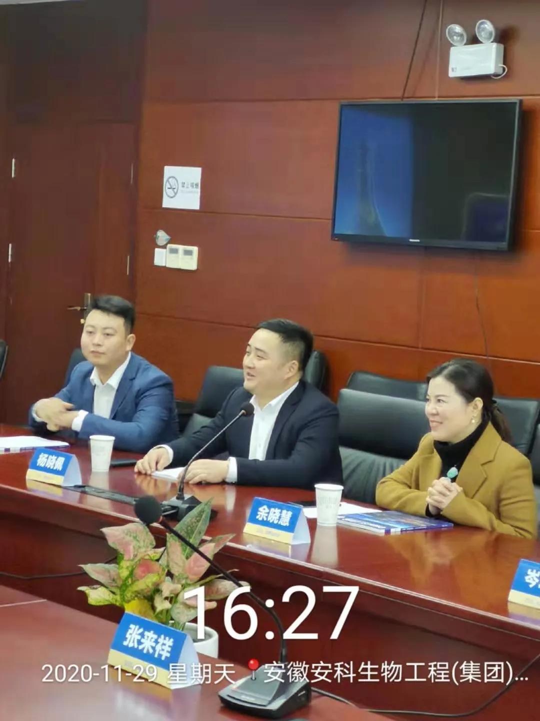 2020年11月29日,翼騰裝飾攜手四川郎酒集團到訪安徽安科生物工程(集團)股份有限公司。我公司總經理余曉慧,郎酒品牌方共赴此行。雙方就公司名酒進名企展開交流座談。公司高級副總裁姚建平、運營總監兼董事會秘書李坤、行政總監張來祥、行政中心辦公室主任李巖、證券事務部主管朱佳佳等陪同參觀安科生物工程股份有限公司。 李總就公司的基本情況、子公司的業務范圍、公司最新科研進展情況以及合肥大基因中心建設情況等方面進行了介紹。 郎酒領導到達安科生物,先進行參觀,參觀過程中安科生物進行企業介紹,在隨后召開的座談會上,李總就目前合肥大基因中心的建設前景以及面臨的問題與調研組展開深入的交流。 會后,我們誠邀安科生物集團領導蒞臨翼騰空間和郎酒莊園進行訪問考察。三家來自裝飾、名酒、生物科技不同行業的優秀企業,在交流中互汲寶貴經驗和思想,共同努力,把更好的產品和服務帶給客戶,奉獻社會。 |