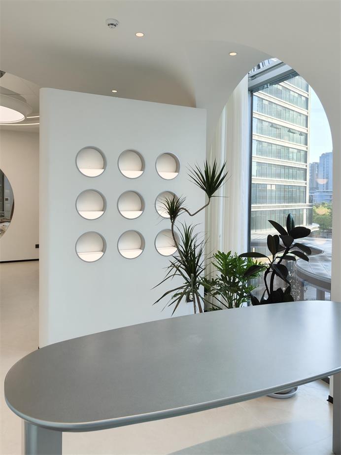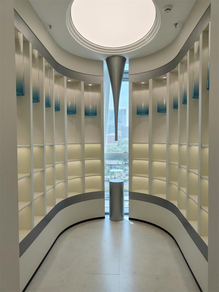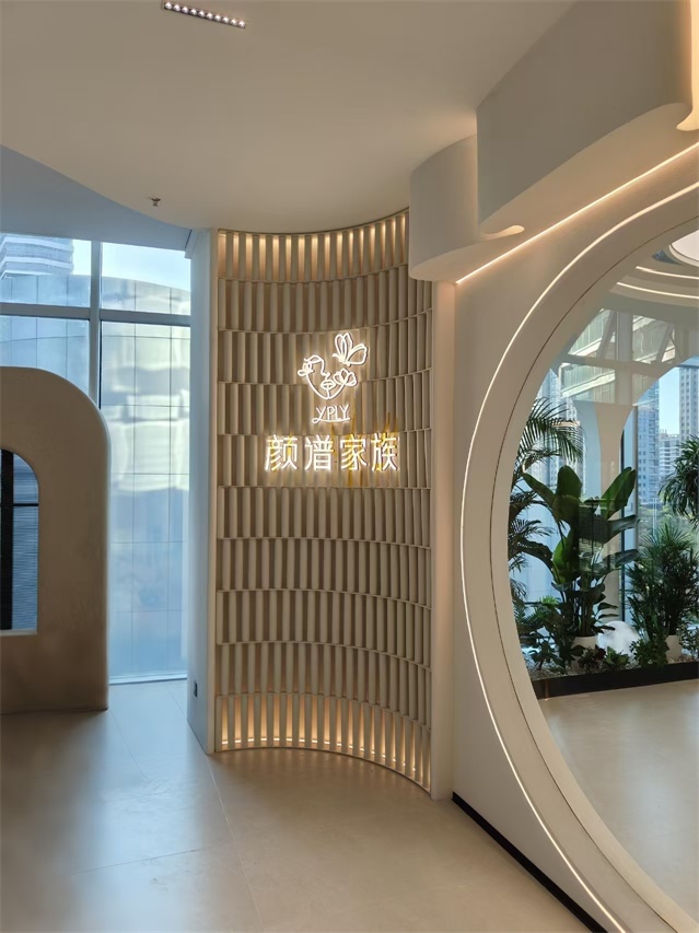 白色弧形隔斷配九宮格圓龕,綠植與金屬桌碰撞,拱形窗框都市景,開啟藝術感美膚體驗序章。 弧形格柵暖光襯托發光品牌標識,圓形鏡面延伸空間,藝術化傳遞品牌柔美專業屬性。 木質背景配黑色畫框,專利證書陣列成墻,直觀展現品牌科研實力與專業可信度。 藍白洽談區弧形吊頂柔光,落地窗引自然光與城景,營造信任松弛的溝通氛圍。 對稱弧形陳列架如雙翼,漸變藍玻璃柱點綴,圓形燈幕與金屬錐打造藝術化產品殿堂。 |